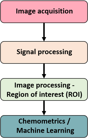 This scientific study presents the methodology for analyzing hyperspectral images in the laboratory, describing best practices in image acquisition, signal processing, image processing and finally chemometrics / Machine Learning methods applicable to hyperspectral images.